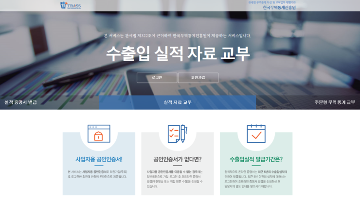 ②무역통계진흥원 (https://www.bandtrass.or.kr/index.do) 공인인증서 로그인하신 후 해당하는 발급유형(연도별, 수출신고필증단위별 등)을 선택하여 수출실적증명서 발급 신청하시면 됩니다.