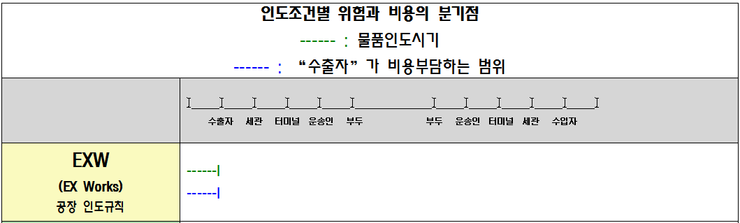 1. "E" 규칙 : EXW -공장인도규칙. 수출자의 공장에서 물품을 바로 인도해가는 것으로 수출자의 의무가 가장 적은 규칙이라고 할 수 있다.